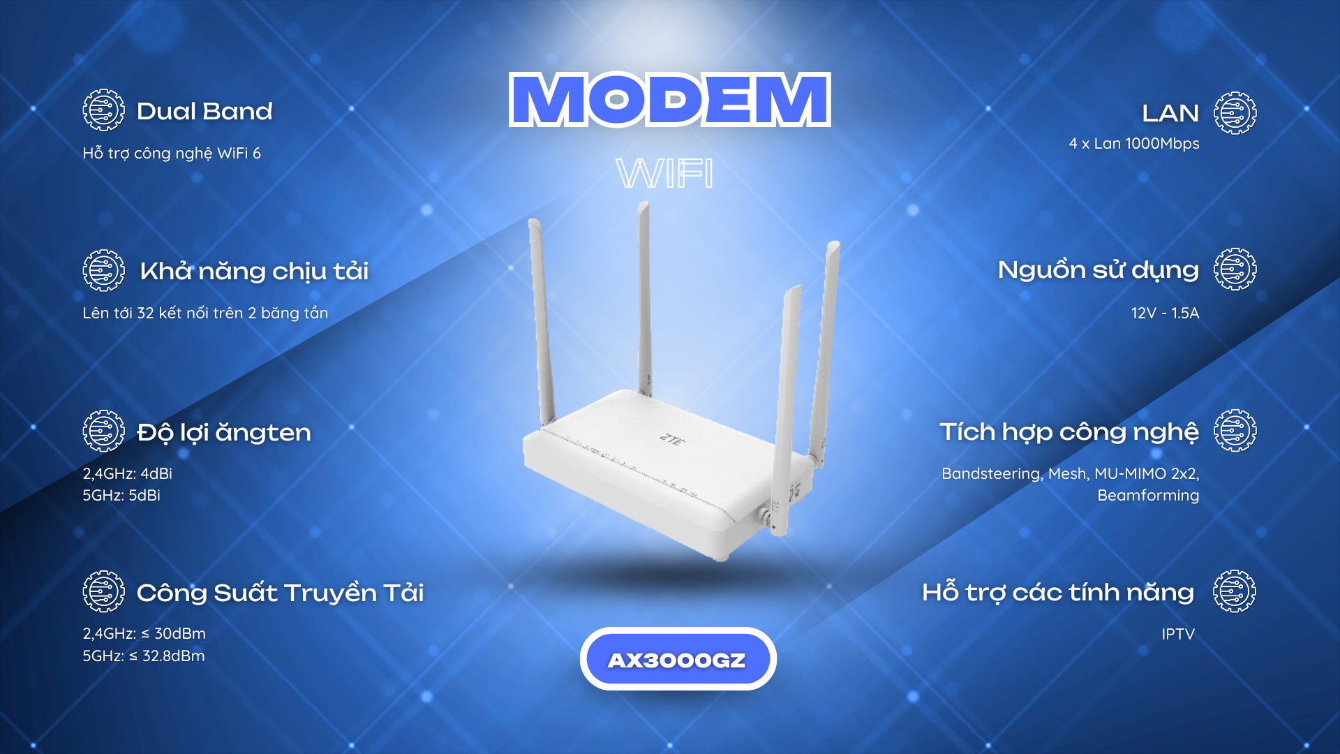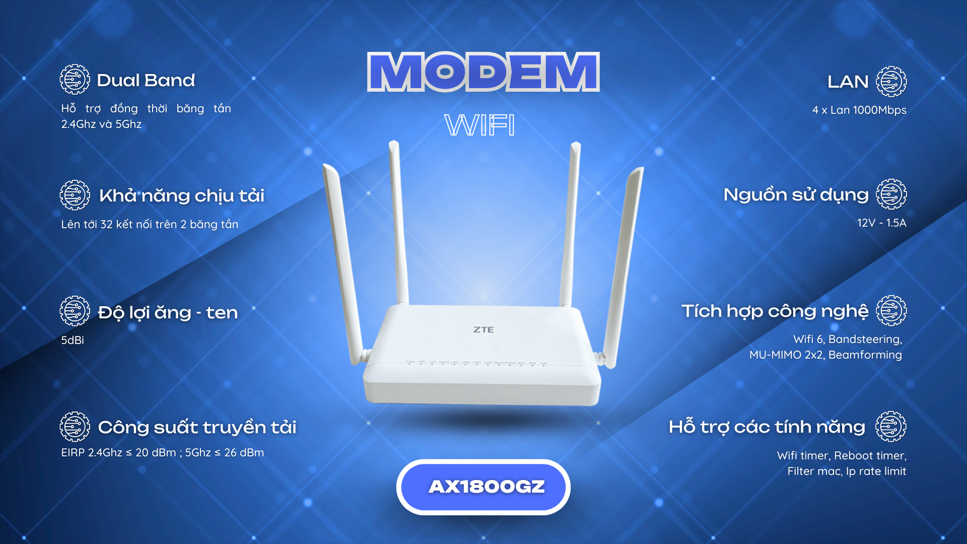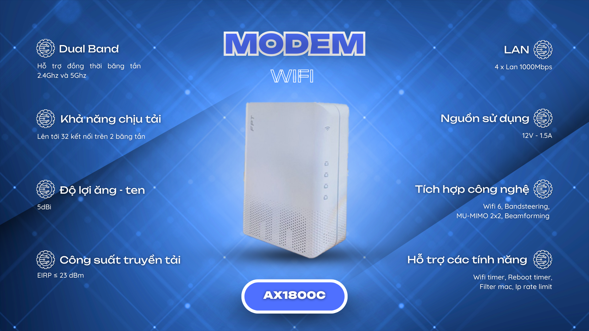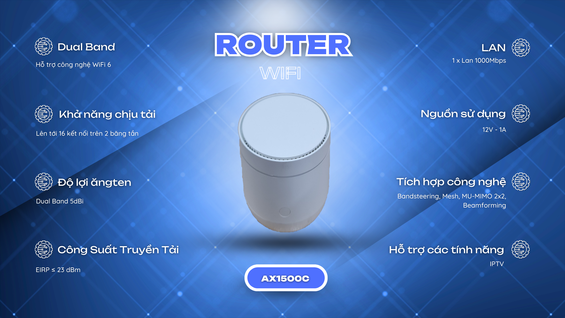 Công nghệ Wifi 5 là công nghệ thế hệ thứ 5 , ứng dụng và hoạt động đồng thời cùng một lúc trên hai băng tần 5Ghz và 2.4Ghz , hỗ trợ MU-MIMO , vùng phủ sóng rộng và tương thích hoàn toàn với các chuẩn Wifi cũ ( a/b/g/n)